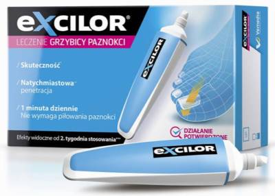 2. Gdy zauważyłaś żółte lub brunatne przebarwienia na paznokciach, to znak, że infekcja zaatakowała także płytkę. Im szybciej zaczniesz stosować skuteczne preparaty, tym leczenie będzie krótsze, a efekty szybciej widoczne Dlatego systematycznie stosuj preparat na grzybicę paznokci np. Excilor w postaci sztyftu lub płynu. Opakowanie zostało wyposażone w wygodny aplikator, który zapewnia higieniczne stosowanie płynu. Zawiera mleczan etylu, który zakwasza mikrośrodowisko i natychmiast hamuje wzrost grzybów, a dzięki technologii TransActive wnika głęboko w płytkę, co powoduje, że leczenie jest bardziej skuteczne. Płyn zawiera także pielęgnujące paznokcie lipidy i biotynę, które zmiękczają, nawadniają i odżywiają płytkę. Jedno opakowanie wystarcza aż na 400 aplikacji. Niezwykle ważne jest, że przed użyciem nie trzeba piłować płytki paznokcia, co sprawia, że aplikacja jest szybka i łatwa.