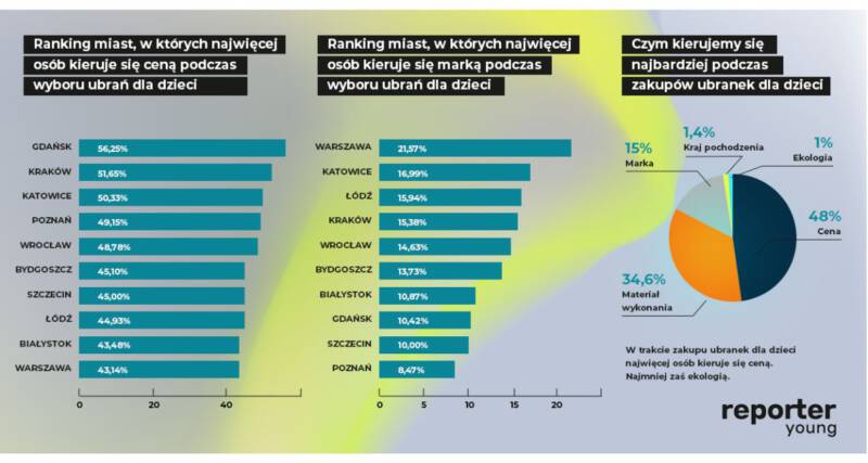 W badaniu przeprowadzonym na przełomie czerwca i sierpnia 2022 roku wśród mieszkańców największych polskich miast, Reporter Young sprawdził preferencje Polaków, związane z zakupem ubrań dziecięcych. Przedstawiamy najciekawsze wyniki.