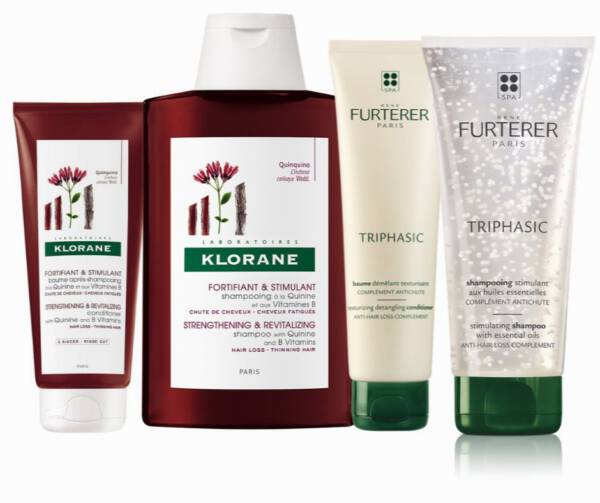 Aby zapobiec i spowolnić wypadaniu włosów, warto wypracować własną rutynę pielęgnacji włosów. Sięgnij po sprawdzone kosmetyki. Dwie specjalistyczne linie produktów znanych francuskich marek dedykowane są problemom z wypadających włosów. Mamy na myśli markę Klorane z gamą produktów do pielęgnacji włosów z Quinine, aktywnym składnikiem wybranym ze względu na jego silne właściwości wzmacniające i rewitalizujące na bazie Chininy. Drugą marką jest Rene Furterer z linią Triphasic. Produkty z linii Triphasic zawierają wysoce skuteczne składniki aktywne.