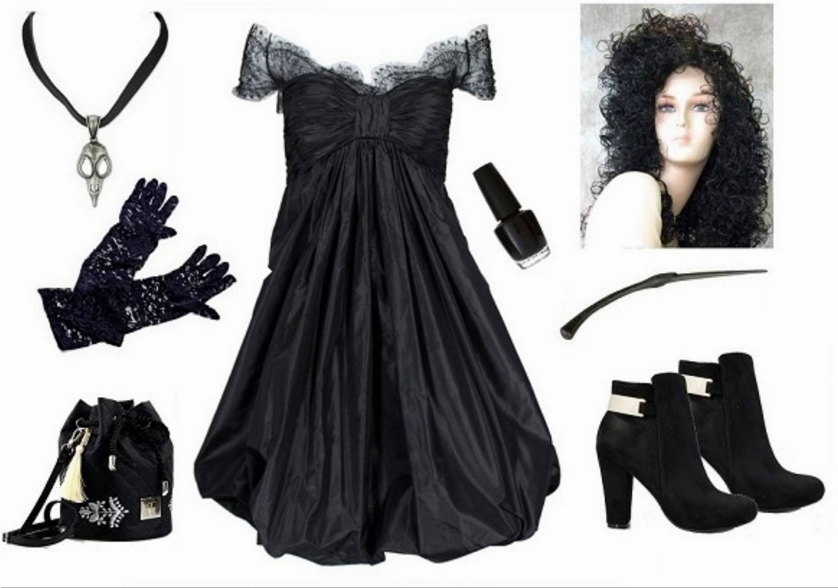 Czas na Bellatrix Lestrange, czyli niesamowicie groźną czarownicę z Harry’ego Pottera. Przebierając się za nią, żadne zombie, demony czy psychopatyczni mordercy nam nie straszni. Bo kto odważy się jej przeciwstawić? Do stworzenia tej stylizacji potrzebować będziemy czarnej sukienki (ewentualnie gorsetu oraz długiej spódnicy), botków, charakterystycznego dla Bellatrix naszyjnika oraz oczywiście peruki, jeśli nie jesteśmy posiadaczkami bujnych loków. Look ten proponujemy dopełnić torebką-workiem oraz koronkowymi rękawiczkami. Wybierając się na halloweenową zabawę nie zapomnijcie o różdżce!