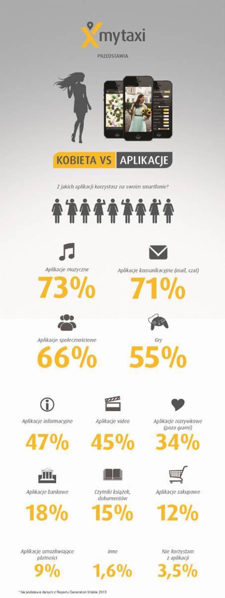 Aplikacje pomagające szybko i sprawnie przemieszczać się po mieście szczególnie cenią sobie mieszkanki dużych miast. Łatwa w użyciu, intuicyjna aplikacja mytaxi, pionier wśród aplikacji do zamawiania taksówek, umożliwia im bezpośrednie połączenie z kierowcą i wybór stawki przejazdu, a przy tym oszczędność czasu i pieniędzy. Z aplikacji mytaxi coraz częściej korzystają też zabiegane mamy, dzięki której ich zaufany kierowca zawozi i odbiera ich pociechy ze szkoły w ustalonej przez nie wcześniej godzinie, gwarantując im bezpieczeństwo i wygodę (możliwość śledzenia trasy taksówki na smartfonie).