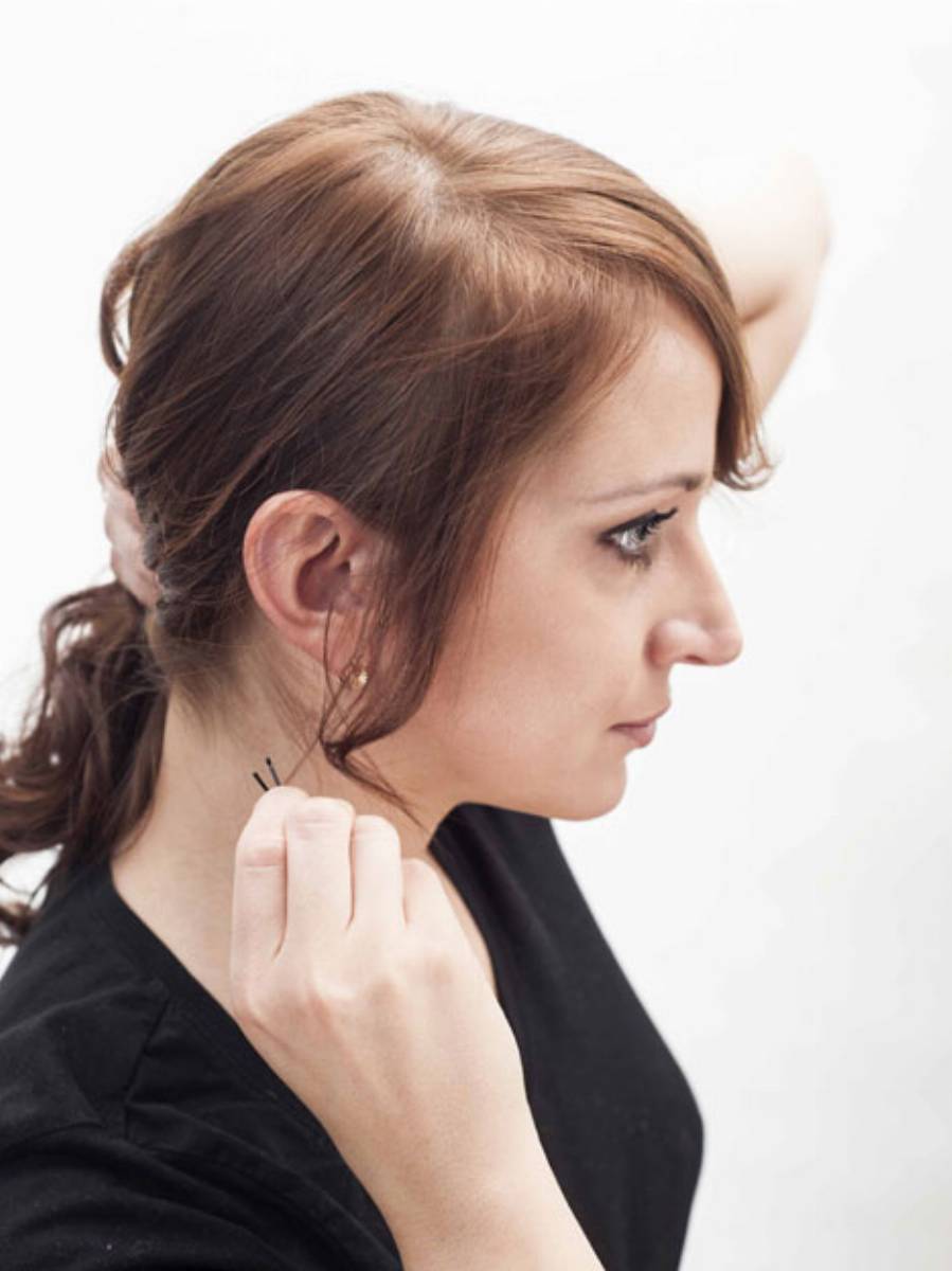 Przegarnij wszystkie włosy na jedną stronę głowy. Następnie odgarnięte włosy przypnij wsuwkami.