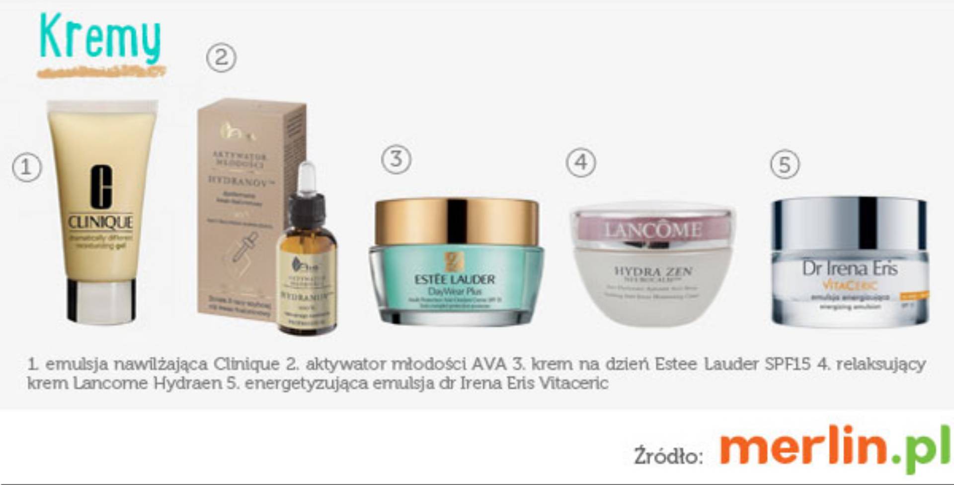 Dobrze dobrany kosmetyk przywróci naszej skórze blask i świeżość, a także zadba o jej nawilżenie. Poszukując odpowiednich kosmetyków odżywiających skórę, warto zwrócić uwagę na te zawierające witaminy, z właściwościami ochronnymi i odbudowującymi. W Merlin.pl, do naszej jesiennej kosmetyczki możemy dobrać kremy na dzień DayWear firmy Estee Lauder, Hydra Zen marki Lancome oraz Vitaceric od Dr Irena Eris. Ciekawą alternatywą dla kremów może być emulsja nawilżająca CLINIQUE Dramatically Different lub kwas hialurynowy Aktywator Młodości od polskiego producenta Laboratorium Kosmetycznego AVA.