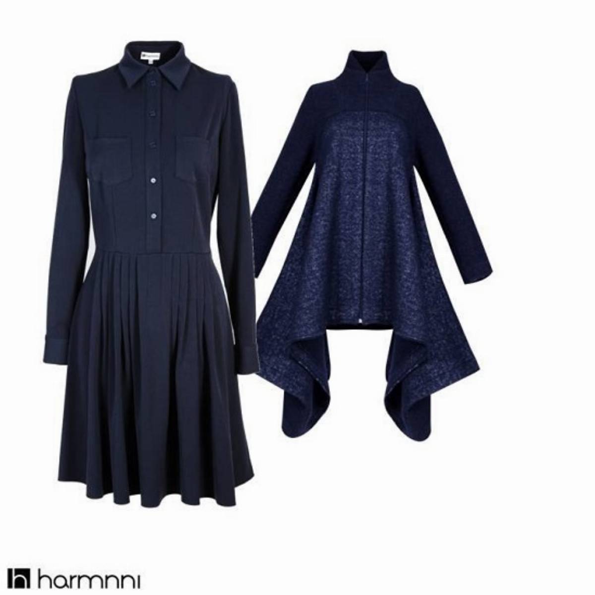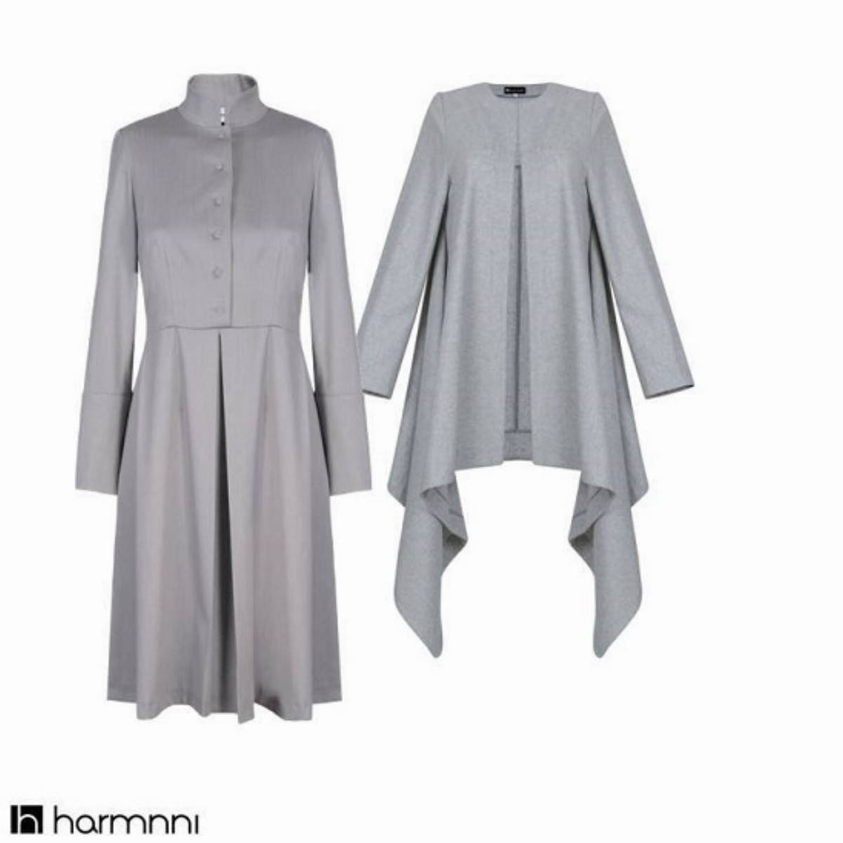 Harmnni opiera swoją kolekcję na kilku liniach kolorystycznych, w obrębie których tworzy podobne stylistycznie kreacje. Lata 50-te są interpretowane w innowacyjny sposób. Sukienki zawsze doskonale podkreślają talię, mają idealny krój, jednak prawdziwą siłą tej kolekcji są płaszcze. Asymetryczne, nowoczesne, ale z retro duchem. Zobacz propozycje marki w klasycznej szarości i granacie oraz przepięknych pastelach.