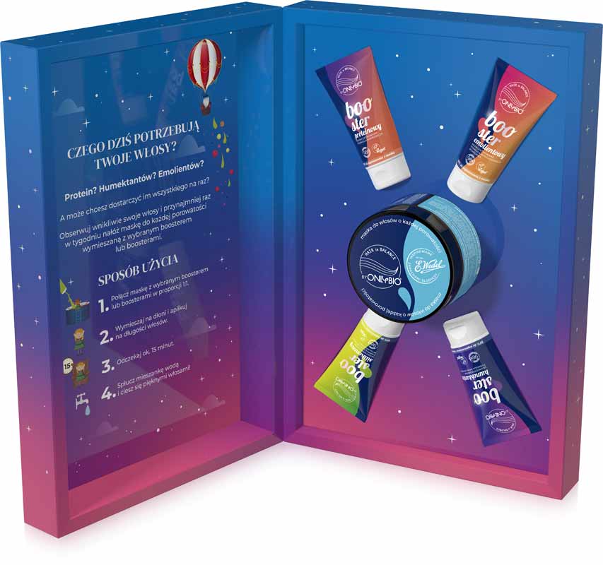 W ramach limitowanej kolekcji produktów E.Wedel i OnlyBio dostępny będzie także limitowany, wyjątkowy DIY HAIR SET – stwórz wymarzone maski do włosów. Produkt składa się z jednej maski do włosów oraz czterech boosterów zapachowych, nawiązujących do wedlowskich słodyczy: pianek Ptasie Mleczko® Waniliowe, batonów Pawełek Toffi i Bajeczny oraz wafelka WW. Unikalny zestaw, niezależnie od preferencji zapachowych, każdego dnia pozwoli nam stworzyć produkt pielęgnacyjny, który w pełni odpowie potrzebom naszych włosów.