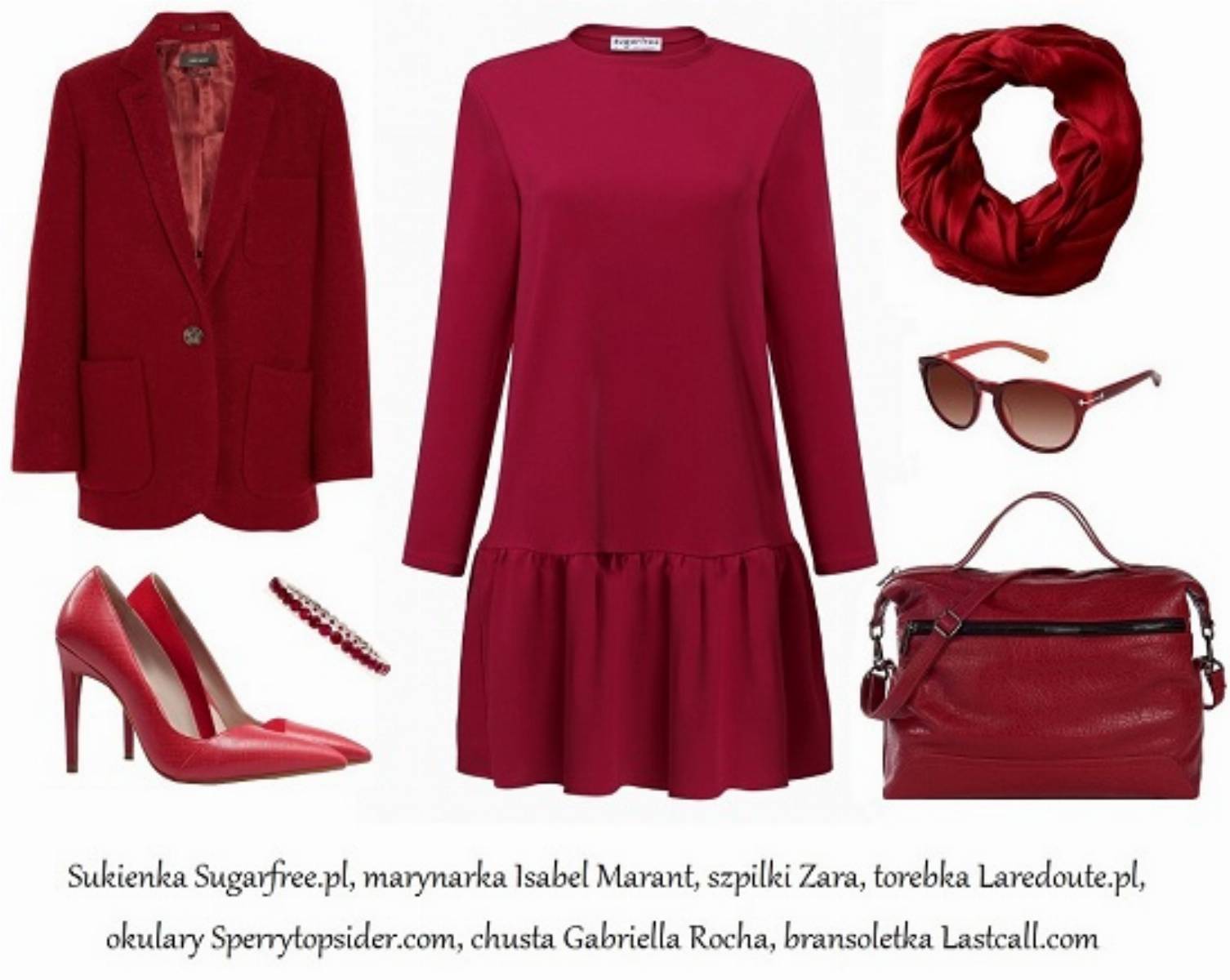 Rubin przywraca energię i chęć do działania. Jest więc jak znalazł na te coraz krótsze i coraz chłodniejsze dni. Sukienkę ze sklepu Sugarfree.pl proponujemy zestawić z ciepłą, wełnianą marynarką oraz klasycznym czółenkami. Miękka torba o ciekawej fakturze pomieści cały kobiecy świat, a wysadzana rubinami bransoletka z pewnością przykuje wzrok. Oto stylizacja dzięki której zapomnisz o jesiennej chandrze!