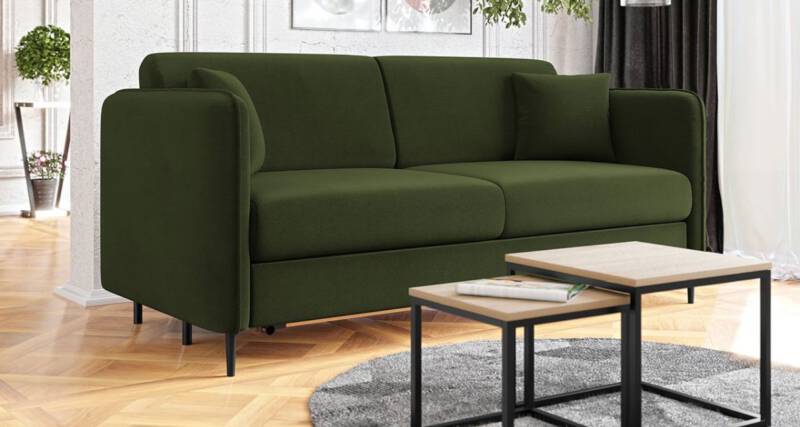 - Mała kanapa do spania – kompaktowe wymiary mniejszych modeli świetnie odnajdują się w każdym pomieszczeniu. Salon, pokój dziecka, gabinet, a nawet stróżówka czy dyżurka. We wszystkich tych wnętrzach zapewnią wygodne warunki do snu bez zbędnego zabierania przestrzeni.