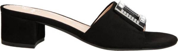 Eleganckie czarne klapki z masywną ozdobą z cyrkoniami