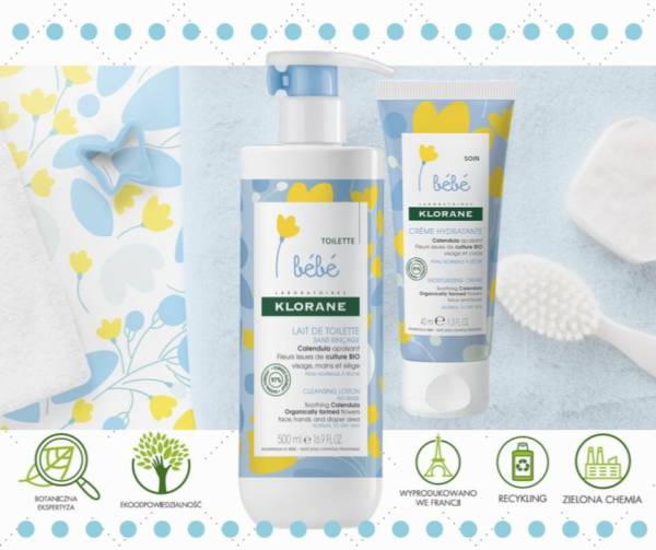 Głównym składnikiem produktów dedykowanych pielęgnacji delikatnej skóry dziecka jest nagietek. W skład serii Klorane Bébé wchodzą m. in. chusteczki, maści czy spraye chroniące przed oparzeniami. Zawierają one olejki roślinne odpowiednie także do masażu skóry dziecka. Użyty do produkcji nagietek pozyskiwany jest z ekologicznych upraw, gdzie kwiaty zbiera się ręcznie. Połączenie nagietka z izoleucyną (niezbędnym aminokwasem) wzmacnia naturalną barierę ochronną skóry dziecka. Linia przeznaczona jest do pielęgnacji dzieci już od 1 dnia życia!
