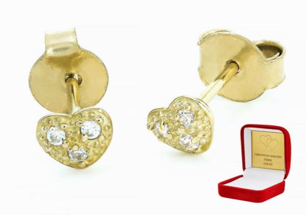 Złote kolczyki z cyrkoniami w kształcie serca od Ergold.