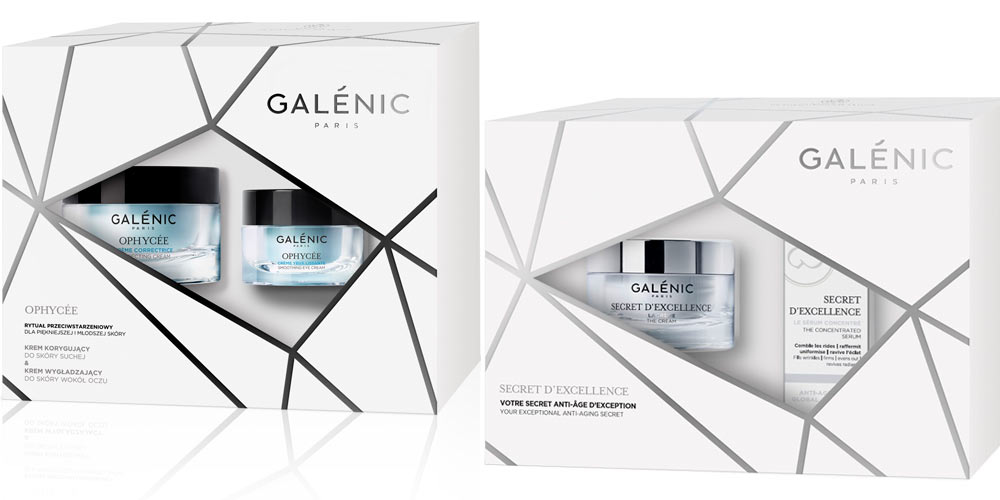 - Zestaw Secret D’exellence – Ostatnia propozycja od Galénic to zestaw zainspirowany genem Klotho (nazywanym genem długowieczności). Zawiera krem o wszechstronnym działaniu przeciwstarzeniowym, który niweluje zmarszczki, dogłębnie nawilża skórę, ujednolicając jej koloryt, nadając cerze blasku i wyrównując jej fakturę oraz serum z najwyższymi stężeniami składników aktywnych w całej linii. To rozwiązanie w sam raz dla kobiet szukających uniwersalnej, kompletnej pielęgnacji przeciwstarzeniowej, łączące osiągnięcia nauki z najwyższą przyjemnością
