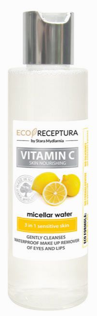 Vitamin C płyn micelarny 3 w 1 Stara Mydlarnia to produkt, który jednocześnie oczyszcza skórę i ją koi. Powstał z myślą o myciu twarzy i demakijażu i jest przeznaczony dla osób ze skórą wrażliwą, skłonną do powstawania niedoskonałości. Usuwa nawet wodoodporny makijaż. Dzięki dodatkowi alantoiny łagodzi podrażnienia i zaczerwienienia. Zawiera także ekstrakt z cytryny, czyli naturalny antyoksydant, który neutralizuje wolne rodniki. Zapobiega starzeniu się skóry, pomaga w eliminowaniu trądziku i przebarwień.