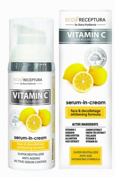 Vitamin C serum kremowe Stara Mydlarnia to lekki i aksamitny krem dedykowany skórze skłonnej do zaczerwienień i przebarwień. Zawiera moc naturalnych składników poprawiających nawilżenie i elastyczność skóry, takich jak: masło shea, olej z pestek winogron, sok z aloesu, ekstrakt z szałwii i zielonej herbaty. Dzięki zawartości witaminy C, B5, E i alantoiny, krem opóźnia zaś procesy starzenia oraz wyraźnie spłyca zmarszczki. Przy jego regularnym stosowaniu skóra nabiera zdrowego blasku i wygląda na wypoczętą.