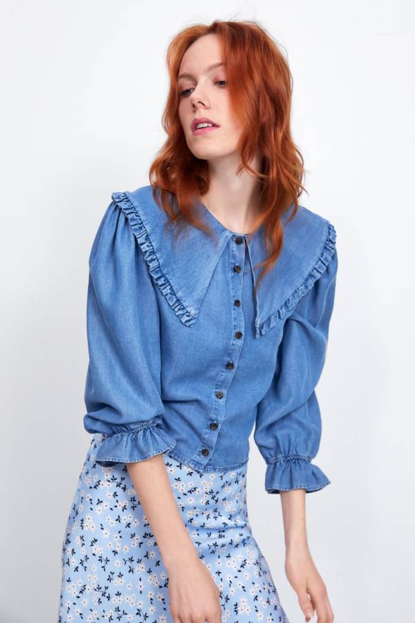 Denimowa bluzka zapinana na guziczki – Zara, 139 zł
