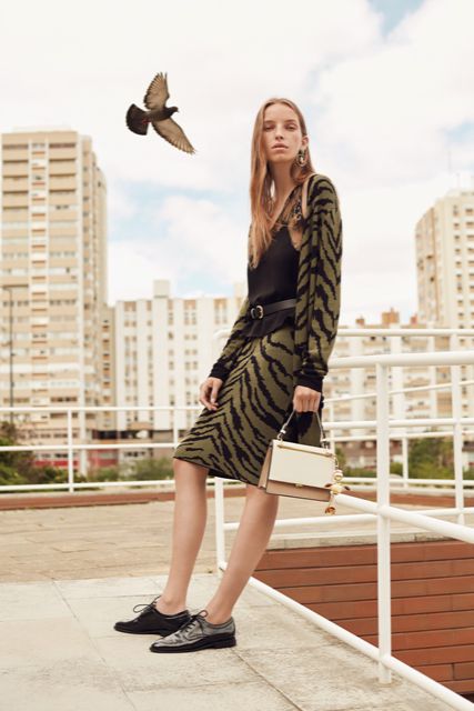 Wzory w zwierzęta takie jakie krowa, lampart czy wąż dodają życia butom i torebkom i mieszają się z metalicznymi i zamszowymi elementami. Ale świetnie prezentują się również na garderobie. Mocnym elementem stylizacji będzie też puchaty szal we wspomniane już printy.