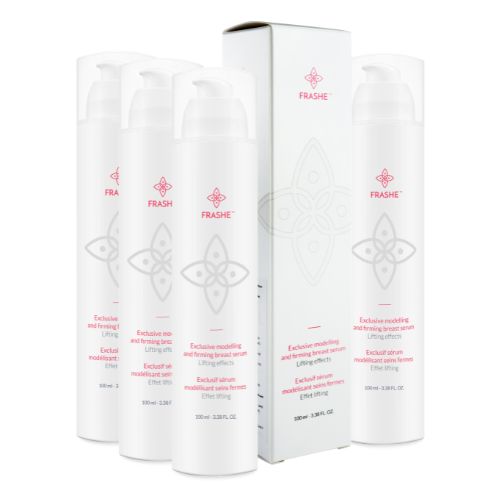Frashe to krem do biustu, w którym znajdziemy wcześniej wspomniane i pożądane składniki naturalnego pochodzenia: lawendę, żeń-szeń syberyjski, kofeinę oraz ceramide 6. Pod względem składu przypomina bardziej serum do biustu – jego składniki aktywne są mocno skoncentrowane. Dzięki temu bardzo efektywnie przyczynia się do poprawy kondycji biustu. Frashe można używać w celu przywrócenia biustowi jędrności, dla nawilżenia skóry i ochrony jej przed starzeniem oraz rozstępami, jak również jako wspomagacz do masaży powiększających piersi. Działa kompleksowo, sprawiając, że skóra staje się mocnym rusztowaniem dla biustu, co korzystnie odbija się na wyglądzie piersi.