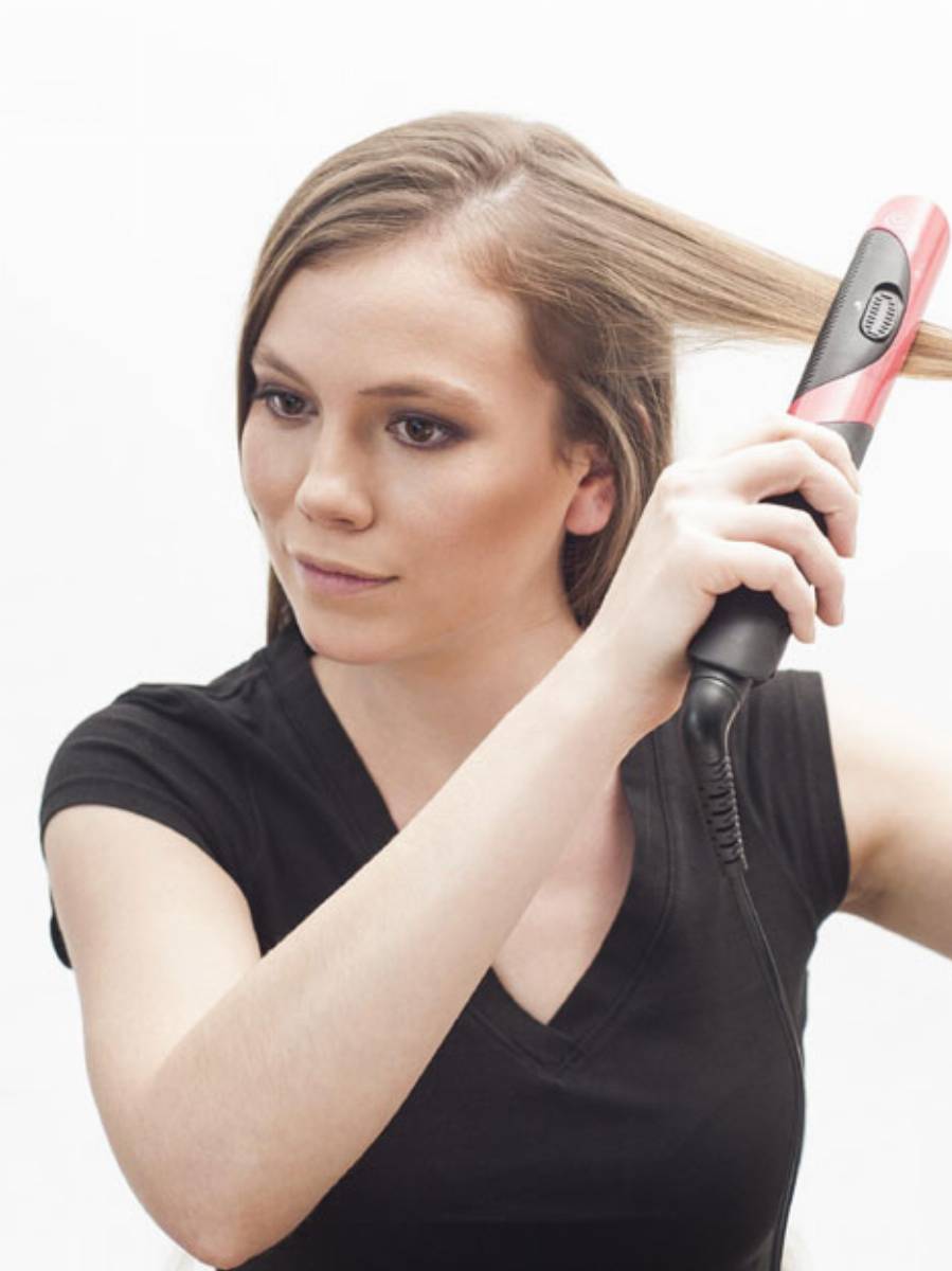 Używając prostownicy Remington Stylist Multi Style wyprostuj włosy nadając im idealne wygładzenie. Prostuj włosy pasmo po paśmie zaczynając od spodnich warstw, a kończąc na wierzchnich. Im cieńsze pasma będziesz dobierać, tym Twoje włosy będą lepiej wygładzone.