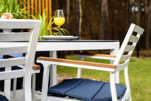 - Krzesła ogrodowe drewniane – często uchodzą za najtrwalsze i najbardziej stylowe. O ile jednak piękna w żadnym wypadku nie możemy im odmówić, tak warto zastanowić się, czy zawsze będą one najlepszym wyborem w kwestii trwałości. Drewno wymaga regularnej renowacji i okresowego odnawiania powłoki, która zabezpiecza mebel przed wpływem czynników atmosferycznych. Zaniedbanie tego obowiązku i wystawianie krzeseł drewnianych na działanie deszczu lub ostrego słońca może sprawić, że mebel zostanie nieodwracalnie uszkodzony.