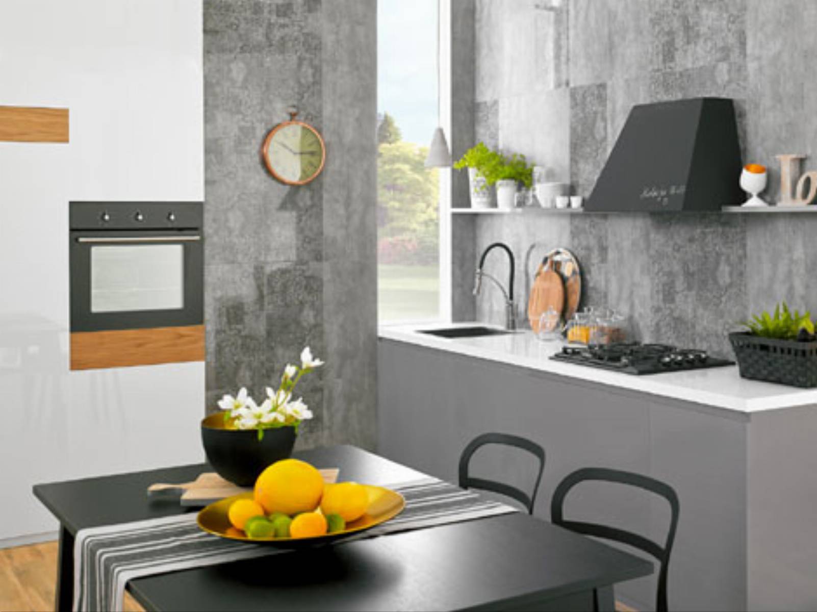 Modne, a przy tym funkcjonalne, jest zastosowanie płytek ceramicznych na pozostałych ścianach w kuchni. Najlepiej wybrać płytki wielkoformatowe, jak z kolekcji Alghero marki Ceramstic. Ich głównym atutem jest efekt optycznego powiększenia pomieszczenia. „Układając je wzdłuż lub w poprzek ścian można sprawić, że kuchnia będzie wydawać się odpowiednio szersza, dłuższa lub wyższa, co jest szczególnie istotne przy małym metrażu” – tłumaczy Joanna Ciecierska, stylistka marki Ceramstic. Płytki w formacie 60×60 cm idealnie pasują na ścianę nad blatem kuchennym. Dodatkowo, dzięki niewielkiej liczbie łączeń płytki wielkoformatowe sprawiają wrażenie jednolitej powierzchni. Bardzo popularne są gresy porcellanato, a zwłaszcza polerowane, które nadadzą wnętrzu nowoczesny, luksusowy charakter. Należy jednak pamiętać o impregnacji tych ostatnich.