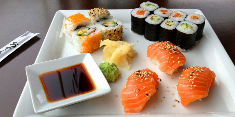 Sushi można jeść pałeczkami albo palcami. Podaje się je z sosem sojowym albo chrzanem wasabi.