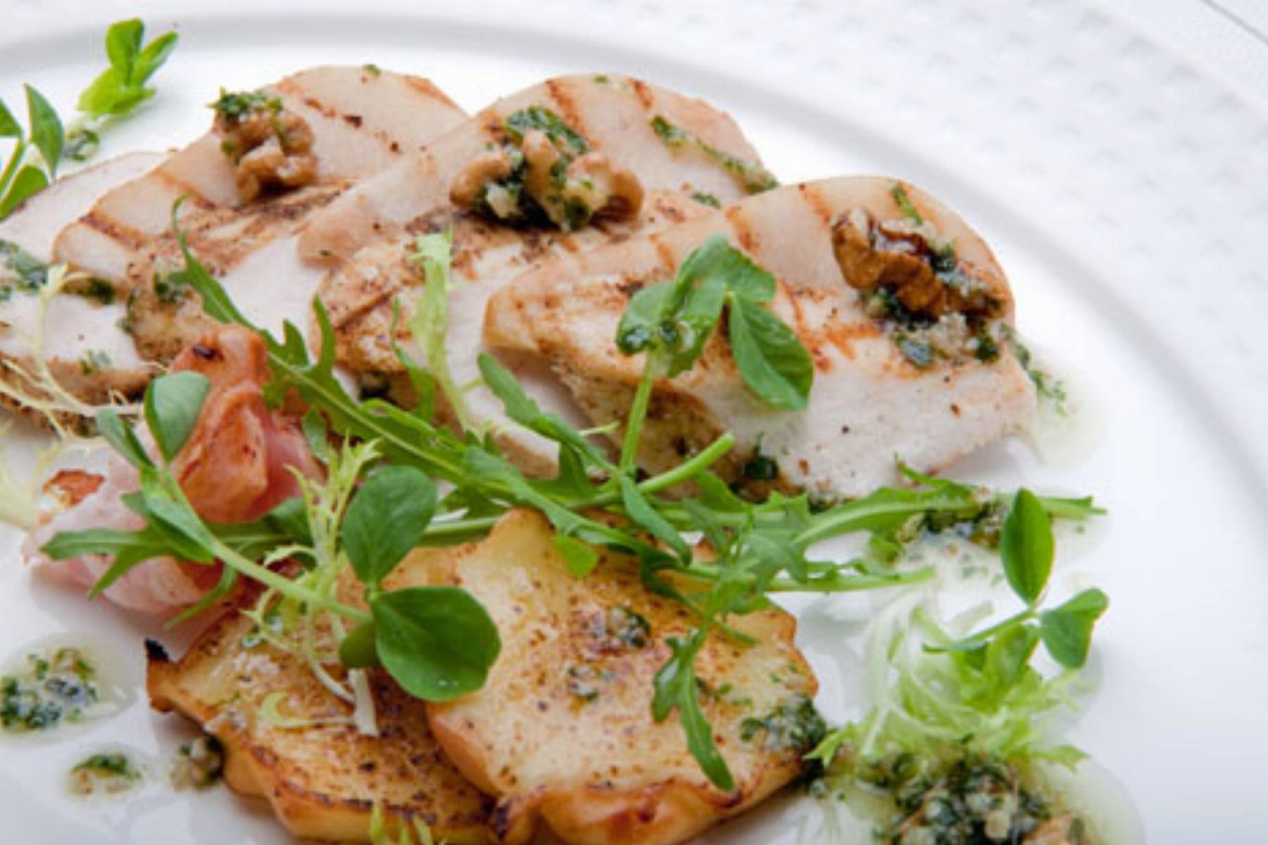 Typowe dla kuchni polskiej owoce oraz podhalański przysmak to podstawa kolejnej wakacyjnej potrawy przygotowanej przez Konrada Birka. Grillowane filety z kurczaka z gruszkami i serem oscypkiem podawane z emulsją pietruszki i orzechów włoskich to propozycja, która ucieszy wielbicieli nieco bardziej tradycyjnych smaków, a także fanów wakacyjnego grillowania.