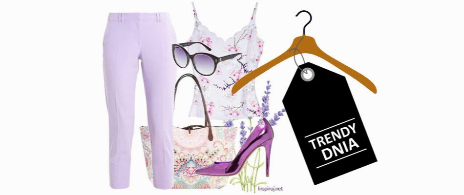 Fiolet to barwa, którą Instytut Pantone ogłosił kolorem tego roku. W codziennych outfitach często okazuje się on jednak trendem trudnym do wdrożenia, szczególnie, jeśli nie chcemy być odebrane przez otoczenie jako ekscentryczki. Dzisiejsza stylizacja jest przykładem oryginalnego i jednocześnie dziewczęcego, romantycznego zestawienia różnych jego odcieni w odpowiednich proporcjach! Najmocniejszym akcentem są tu metaliczne ultrafioletowe szpilki, które dodają pazura kwiatowej bluzeczce z falą na dekolcie i cygaretkom w odcieniu pastelowego fioletu. Całość ciekawie uzupełniają ciemne okulary o fioletowych szkłach i duża wzorzysta shopperka rodem z hinduskiego bazaru. Zakładając taki zestaw w słoneczny letni dzień możemy wprost z ulicy miasta przenieść się na lawendowe wzgórza Prowansji. Komplet sprawdzi się świetnie zarówno w pracy, jak i na spotkaniu z przyjaciółką, podczas solowego wypadu do kawiarni, gdzie w spokoju czytamy kobiece pisma, na targach rękodzieła czy na urodzinach koleżanki. Tajemnica i mistycyzm, od wieków zawierające się w fioletowej barwie dodadzą całej stylizacji aury odrealnienia!
