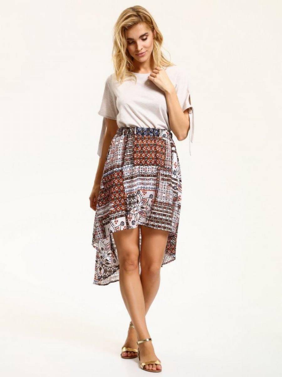 Prócz wygody projektanci Top Secret postawili na zgodność z trendami. Efektem są bluzki odkrywające ramiona z dodatkowymi wiązaniami czy spódnica z asymetrycznym dołem, które uatrakcyjnią nawet zwykłe codzienne stylizacje.
