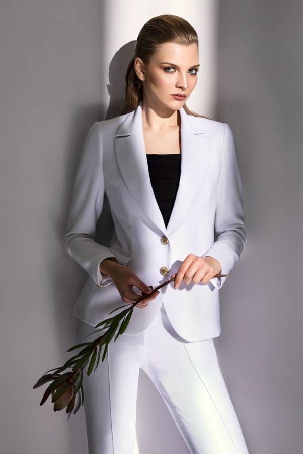 A może tej wiosny zdecydujecie się – na przekór – na śnieżną biel? Biały garnitur jest doskonałym tłem dla kolorowej lub pudrowej bluzki czy koszuli.