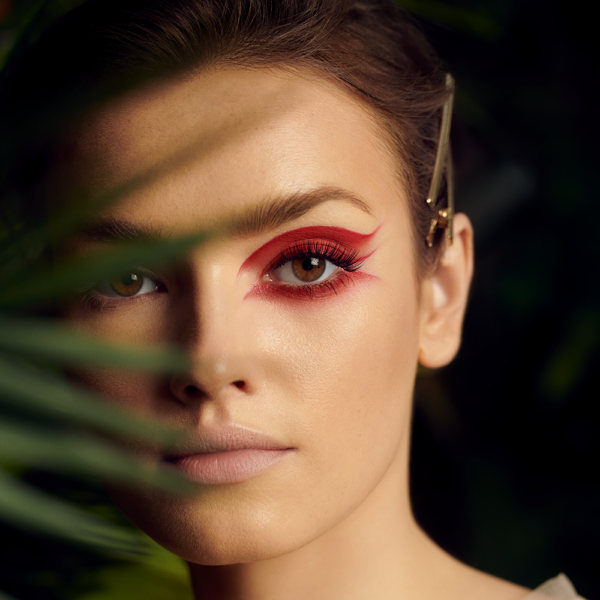 Oko skąpane w intensywnym burgundzie z artystycznymi kreskami będzie przypominać kwitnący egzotyczny kwiat, dodając spojrzeniu głębi i tajemniczego charakteru. Stworzysz je, używając – pięknej z zewnątrz i skrywającej w połyskliwym puzderku z gwiazdkami cienie, przywodzące na myśl szlachetne kruszce – paletki Sparkle! Zaaplikuj je za pomocą niedużego, płaskiego pędzla. Najlepiej będzie użyć wcześniej bazy pod cienie. Efekt podkreśl, muskając kości policzkowe wypiekanym bronzerem Glow&Go!, akcentując brwi pomadą z tej samej serii i tuszując rzęsy maskarą Bang!.
