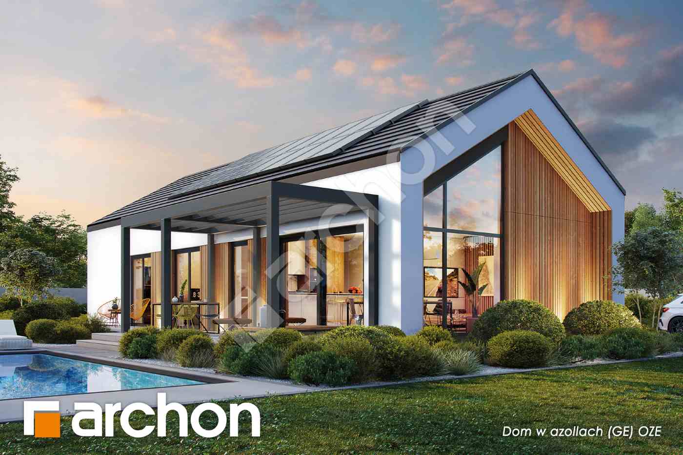 „Dom w azollach (GE) OZE” – energooszczędna parterówka z wysokim przeszkleniem i jednostanowiskowym garażem
