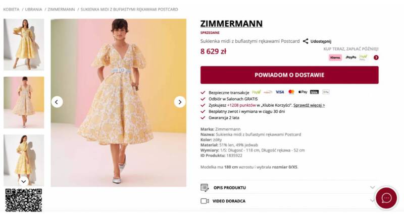 Sukienka Małgorzaty Kożuchowskiej to projekt znanej luksusowej marki Zimmermann. Kreację można było znaleźć w sklepie Moliera2 – kosztowała 8 629 zł. Aktualnie jest niestety niedostępna: