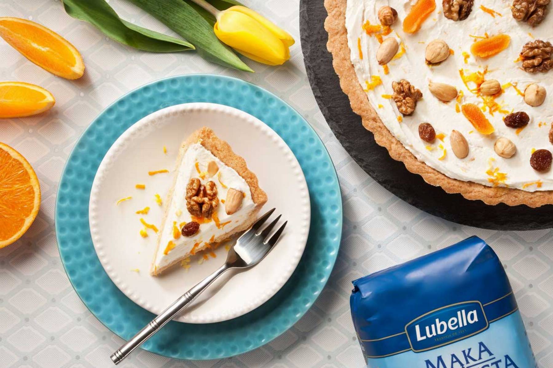 Składniki na Mazurek z kremem serowo-cytrusowym i bakaliami