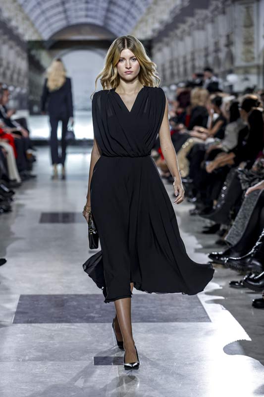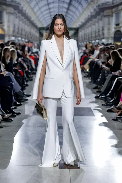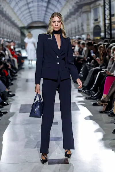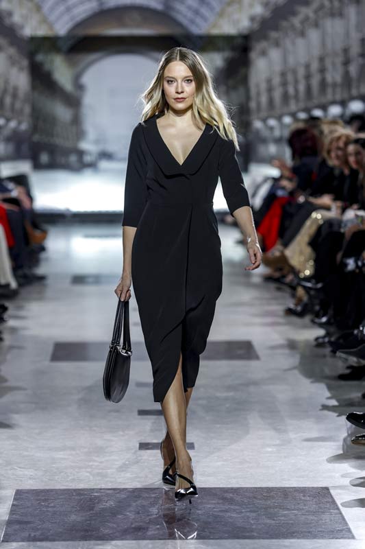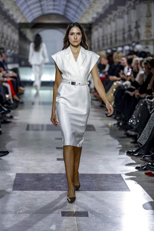 Wśród zaprezentowanych projektów znalazły się również małe czarne sukienki, które nadały klasycznym kreacjom futurystyczny charakter. Dopasowane żakiety z kontrastującymi detalami, jak błyszczące guziki, podkreśliły nowoczesny minimalizm, a jednocześnie oddały hołd włoskiej tradycji krawieckiej.