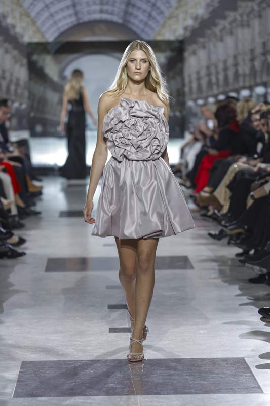 Pierwsza część pokazu Deni Cler, inspirowana słynną operą Teatro alla Scala, oczarowała publiczność prostotą i wyrafinowaniem. Zaprezentowane suknie maxi w odcieniach granatu i kremowej bieli przyciągnęły uwagę swoją ponadczasową elegancją.