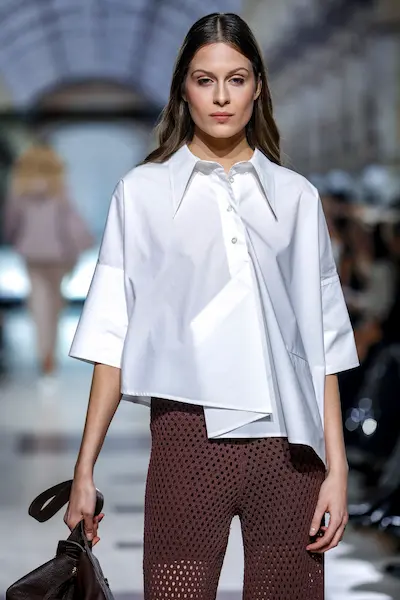 Wykonane z jedwabiu i szyfonu, podkreślały trend przezroczystości, który dominuje w sezonie wiosna-lato 2025. Delikatnie opadające materiały i subtelne wycięcia dodawały sylwetkom lekkości, tworząc wrażenie harmonii i gracji. Obok sukni pojawiły się również kombinezony z szerokimi nogawkami. Ich minimalistyczne kroje idealnie wpisały się w nurt quiet luxury, gdzie luksus wyrażany jest przez jakość tkanin i doskonałe wykonanie, a nie przesadne detale.