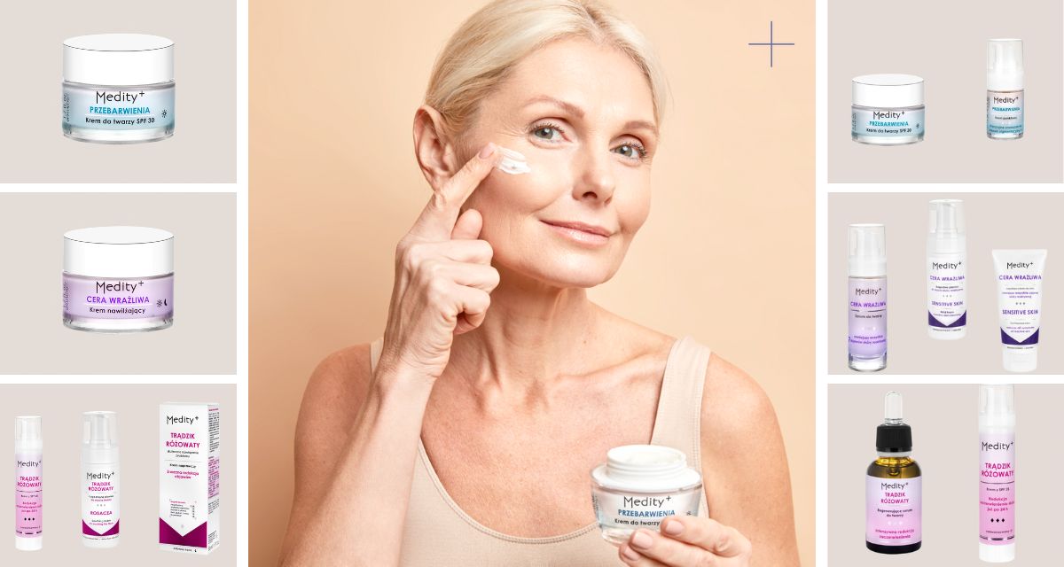 Dzięki synergicznemu działaniu naturalnych składników i najnowszych technologii, Medity+ wprowadza na rynek trzy linie produktów dedykowane cerze wrażliwej, z przebarwieniami oraz z trądzikiem różowatym. Marka łączy ponad 60-letnie doświadczenie w produkcji kosmetyków z najnowszymi badaniami i technologiami, dzięki współpracy z dermatologami. Rezultatem jest gama produktów, które skutecznie radzą sobie z najczęstszymi problemami skóry.