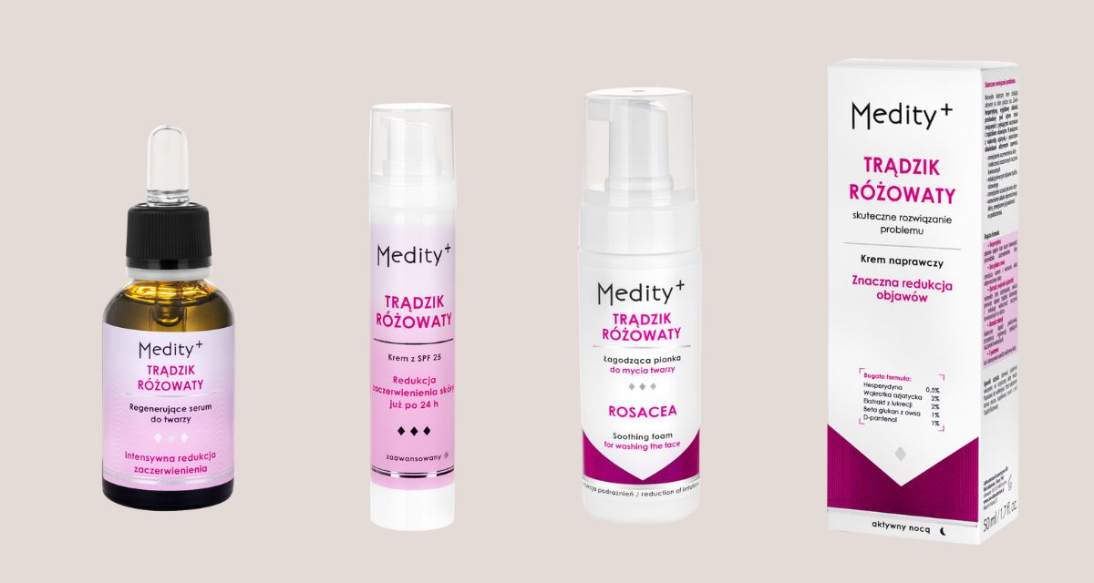 Trądzik różowaty, inaczej acne rosacea, dotyczy aż 10% populacji, w szczególności kobiet po 30. roku życia o jasnej karnacji. To przewlekły stan zapalny skóry wywołany przez zaburzenia naczynioruchowe. MediTy+ to specjalista w dziedzinie dermokosmetyków, wieloletnie doświadczenie w produkcji najwyższej jakości produktów kosmetologicznych dla profesjonalistów i codziennych użytkowników. Seria Trądzik różowaty jest dedykowana każdej osobie z początkowymi objawami oraz w zaawansowanym stadium problemu.