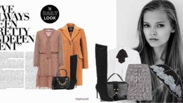 W drugim zestawie mocnym akcentem kolorystycznym jest musztardowy płaszcz, który przywodzi na myśl ulubionego misia. Wyróżnia go nie tylko barwa, ale również szeroki kołnierz i duże kieszenie. Spodoba się młodym, odważnym osobom, które lubią wyraziste i zdecydowane zestawienia kolorów. Przeciwwagą dla charakterystycznego okrycia wierzchniego są klasyczne dżinsy. Szaremu sweterkowi odrobinę pikanterii dodaje wystająca koronka (idealny na spotkanie z ukochanym). Zgrabne botki na obcasie i torebka z frędzlem zadają szyku, tworząc spójny, bardzo kobiecy look.
