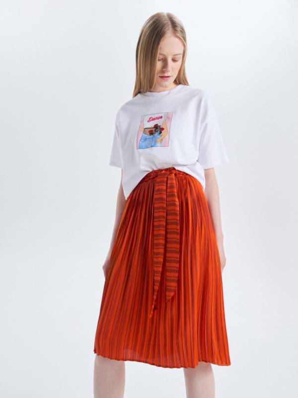 Zwiewna plisowana spódnica w odcieniu pomidora – Cropp, 39,99 zł