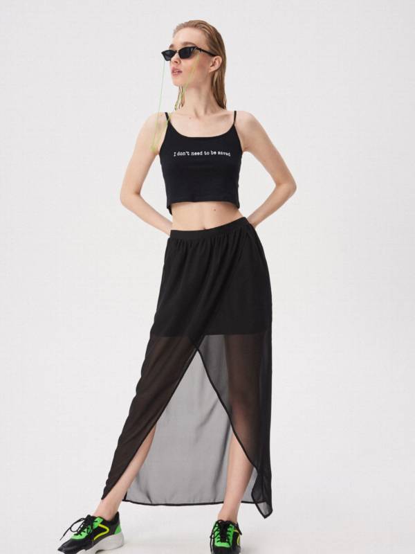 Dwuwarstwowa czarna spódnica z prześwitem – Sinsay, 29,99 zł