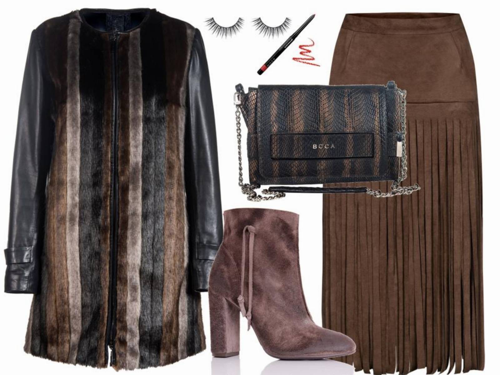 Kurtka, torebka – Boca/boca.pl, spódnica – Mosquito/mosquito.pl, buty – Gianmarko/gianmarko.com.pl, akcesoria TKMAXX/tkmaxx.pl