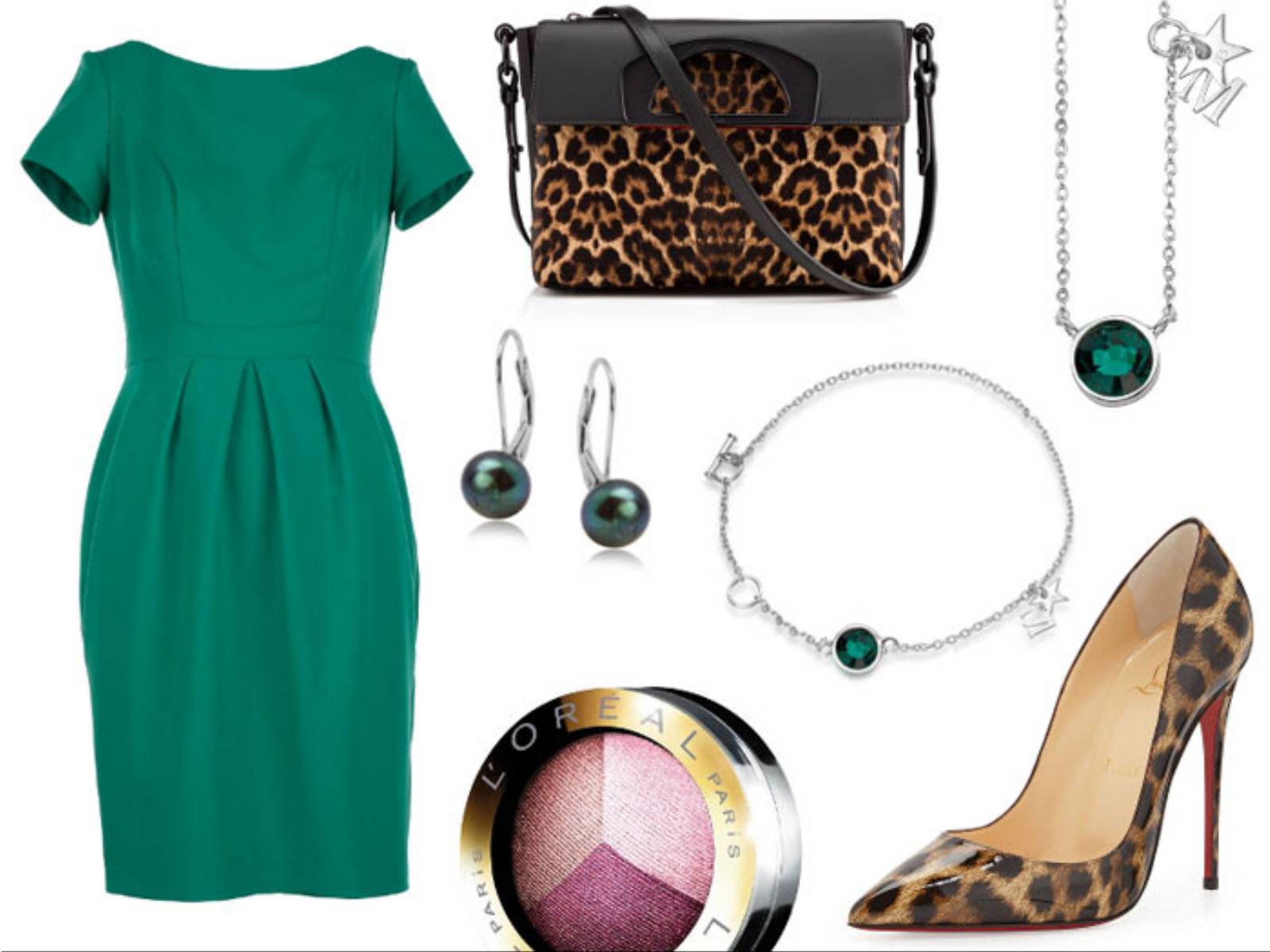 Do zielonej kreacji świetnie będą pasowały akcesoria w modne w tym sezonie lamparcie cętki. Delikatna biżuteria z pojedynczymi zielonymi kryształkami Swarovskiego albo zielonymi perłami Tahiti doda stylizacji wytworności. Subtelny makijaż w odcieniach pastelowego różu ożywi wygląd.