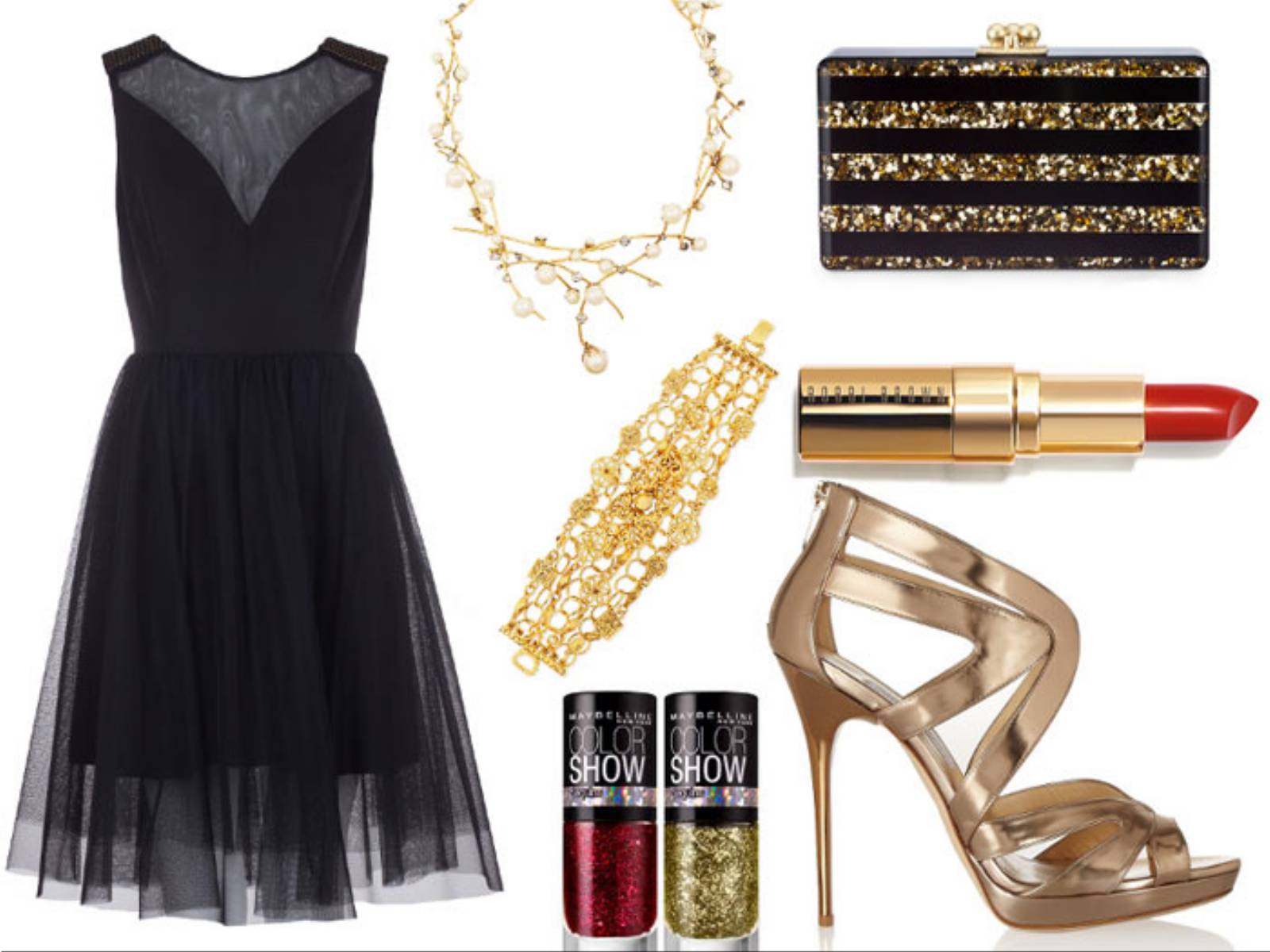 Erickson Beamon, bransoletka Jose&Maria Barrera, brokatowe lakiery Maybelline, szminka Bobbi Brown