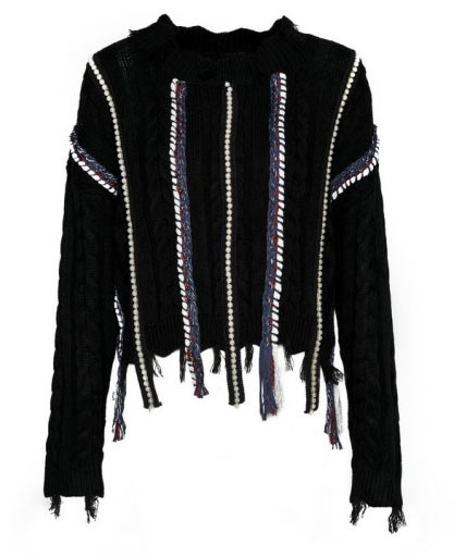Ciekawy czarny sweter z odstającymi wstawkami o etnicznym charakterze – Medicine