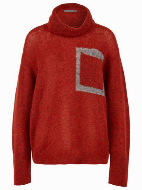 Rudy sweter z golfem z oryginalnym geometrycznym kształtem – Esprit