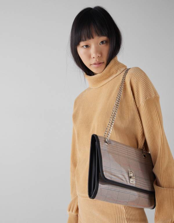 Torebka z kraciastym printem na łańcuszku – Bershka, 89,90 zł