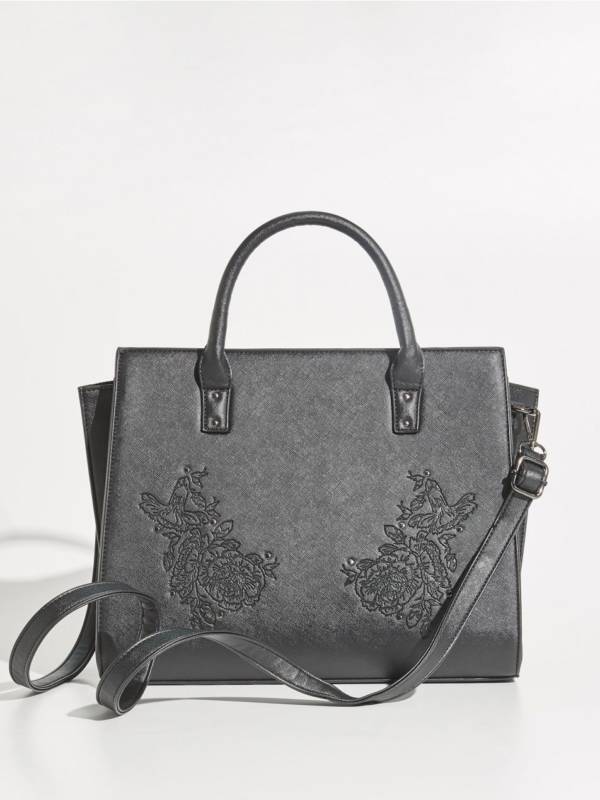 Romantyczna, grafitowa torebka z wytłoczonymi różami – Sinsay, 79,99 zł