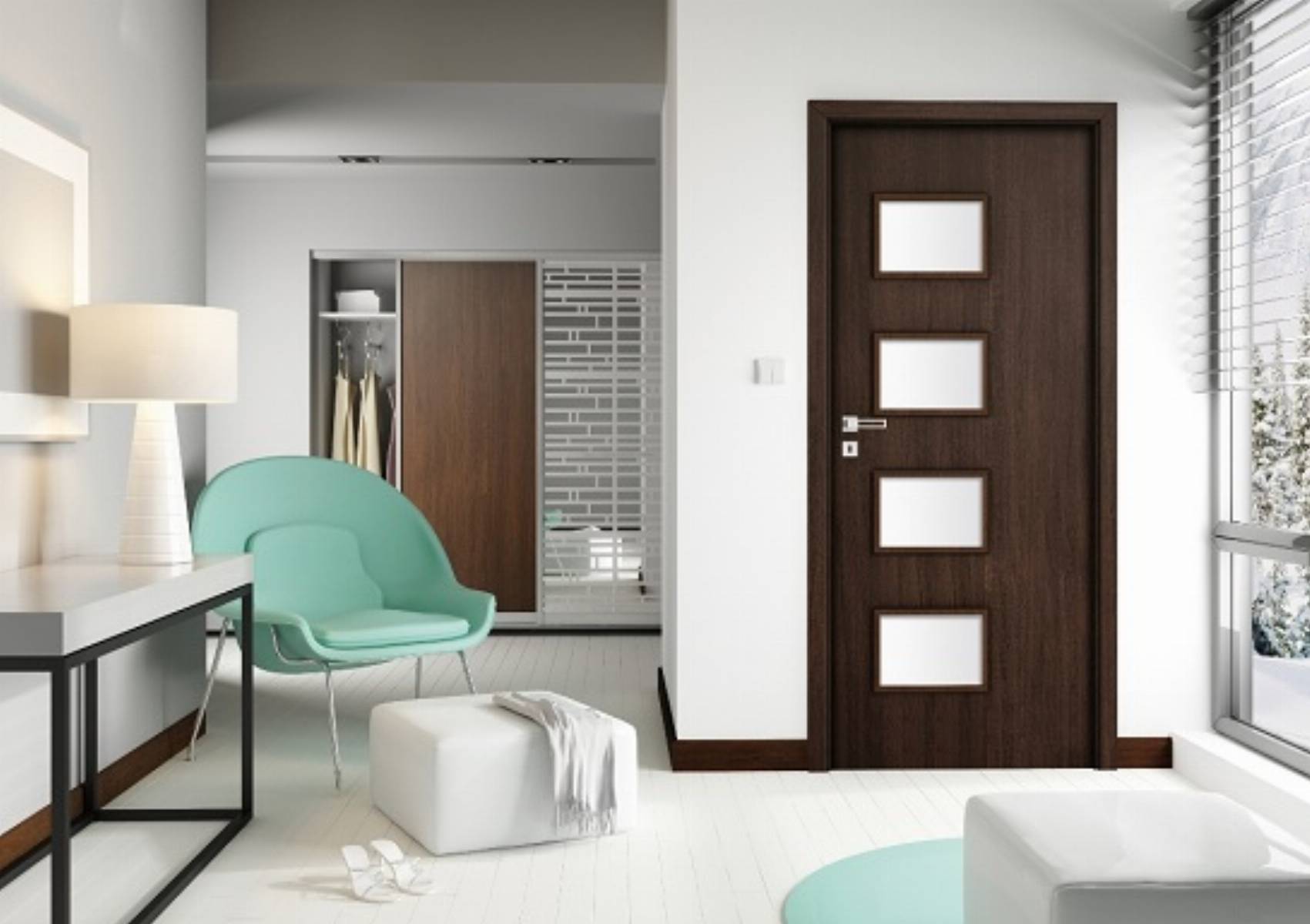 Z rozbielonymi aranżacjami dobrze będą współgrały właściwie wszystkie kolory drzwi. W przełamywaniu białych schematów bardzo dobrze sprawdza się dąb szlachetny. – Drzwi w tym kolorze są bardzo praktyczne. Na drzwiach Martina w okleinie dąb szlachetny praktycznie nie widać odcisków palców czy kurzu, dzięki czemu nie wymagają zbyt wielu zabiegów pielęgnacyjnych – mówi Adam Hucz odpowiedzialny za markę drzwi Invado. Ich zaletą jest także to, że pasują zarówno do nowoczesnych jak i klasycznych aranżacji. Jest to istotne ponieważ trendy zmieniają się dość często, a drzwi wymieniamy rzadko. Jeśli planujemy wnętrze nowoczesne, o lekko industrialnym charakterze, lub po prostu chcemy doświetlić przestrzeń, warto rozważyć zakup drzwi szklanych z kolekcji Amber. W różnych proporcjach, w zależności od modelu, łączą one szkło przezroczyste z satynowym.