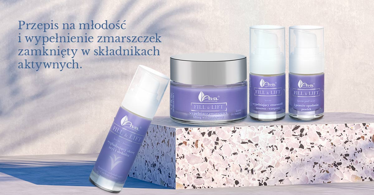 FILL & LIFT to linia kosmetyków najnowszej generacji o ściśle ukierunkowanym działaniu. To poprawa wyglądu w trybie instant bez inwestycji w medycynę estetyczną. Seria składa się z 4 kosmetyków, które są materializacją snów o pięknej cerze: wypełniają zmarszczki i działają liftingująco. Autorskie receptury i miks składników aktywnych (olej z kory drzewa lapacho, olej z sezamu, ekstrakt z lotosu, zielony kawior, kompleks odmładzający) są gwarancją odmłodzonej skóry.