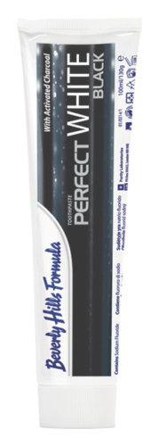 Pasta do zębów Beverly Hills Perfect White Black Toothpaste wybiela rozprawiając się z osadem występującym po kawie, herbacie, winie czy owcach. Eliminuje także bakterie powodujące nieświeży oddech i neutralizuje pozostałe zapachy, pozostawiając uczucie świeżego oddechu przez cały dzień.
